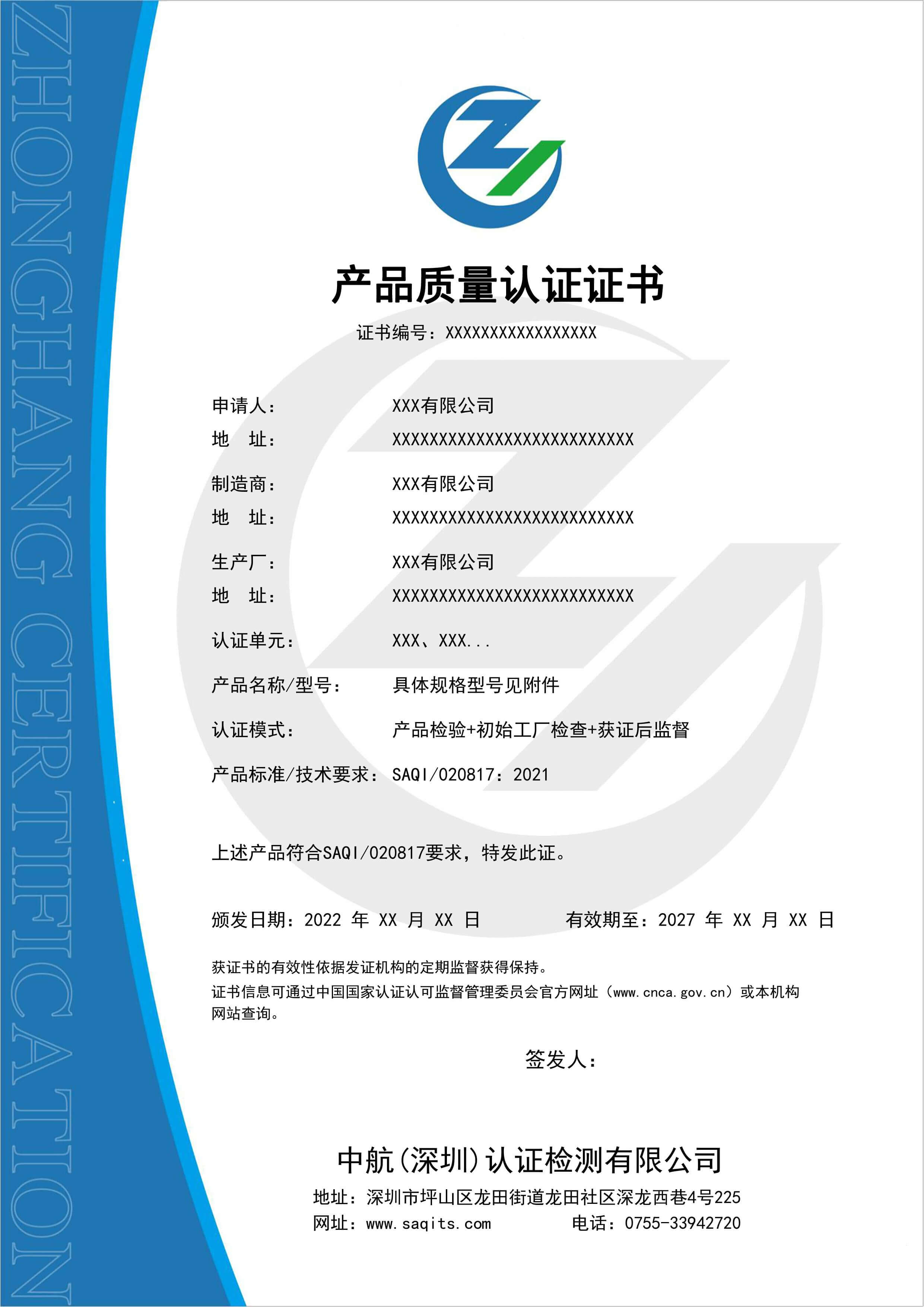 • 產(chǎn)品質(zhì)量認(rèn)證證書